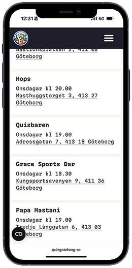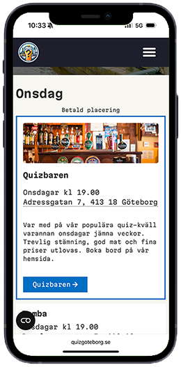 Varje månad besöker 3000+ göteborgare quizgoteborg.se för att hitta rätt quiz att besöka. Nu har du möjlighet att leda dem direkt in på din hemsida eller bokningssystem.